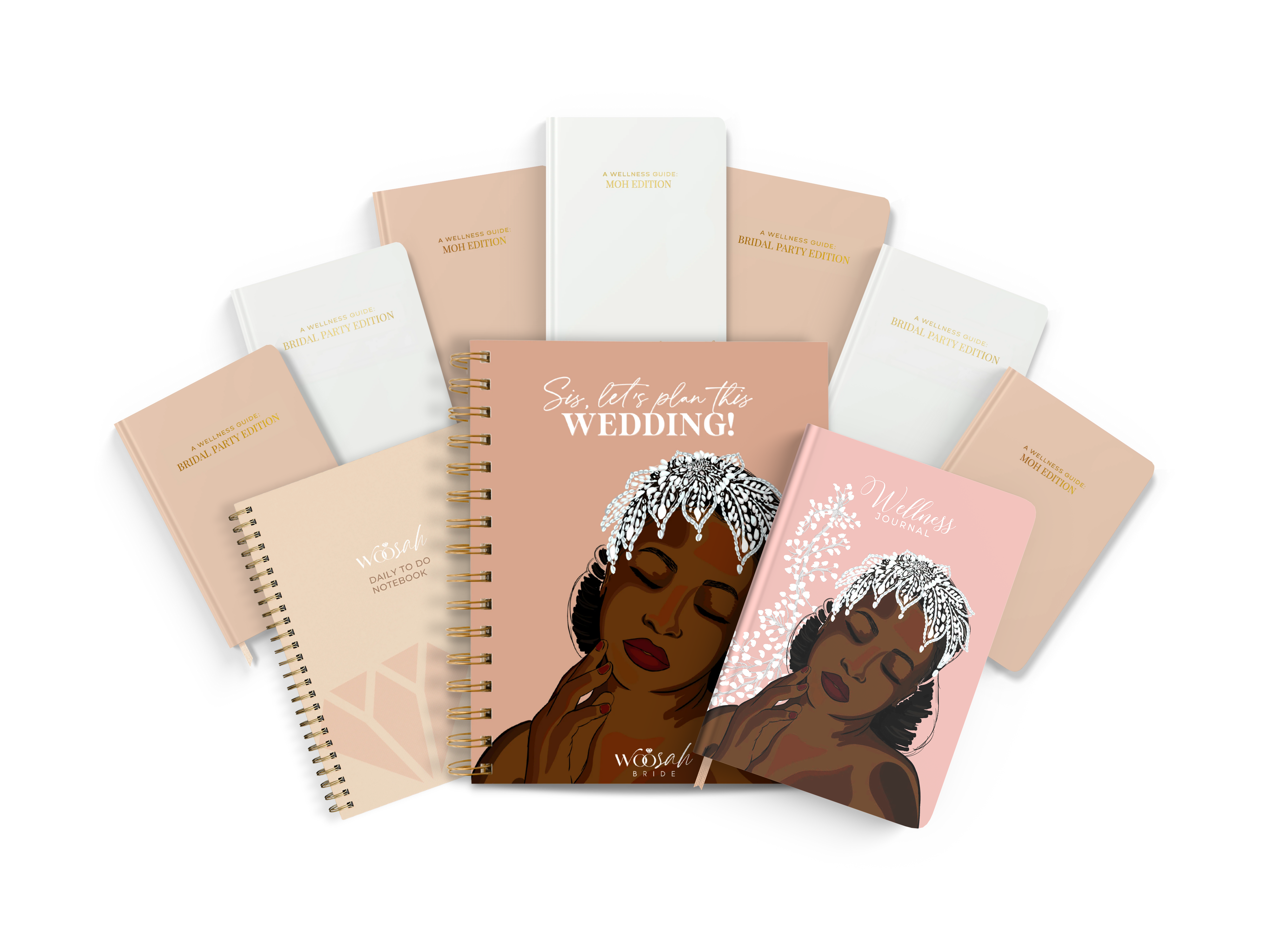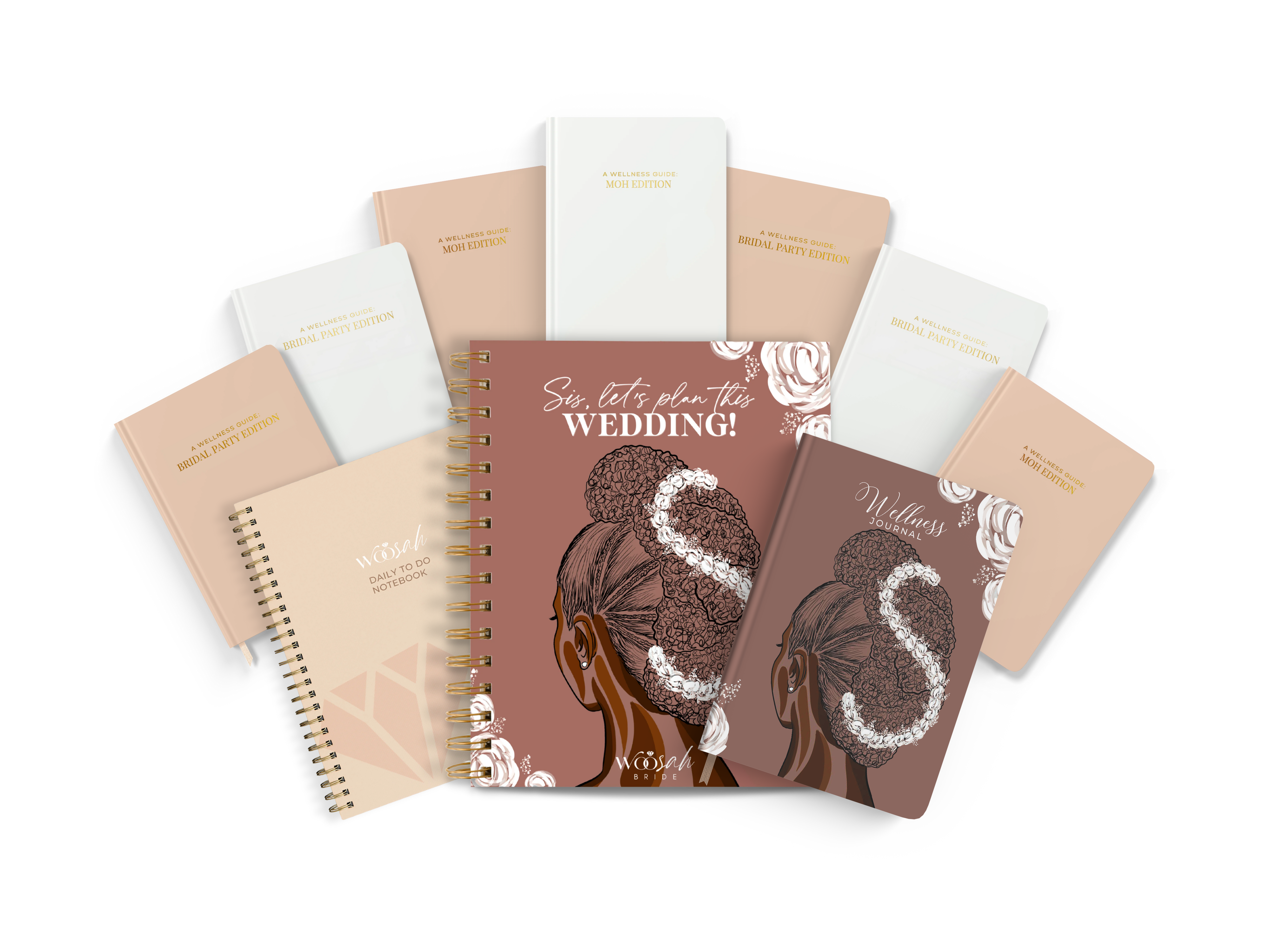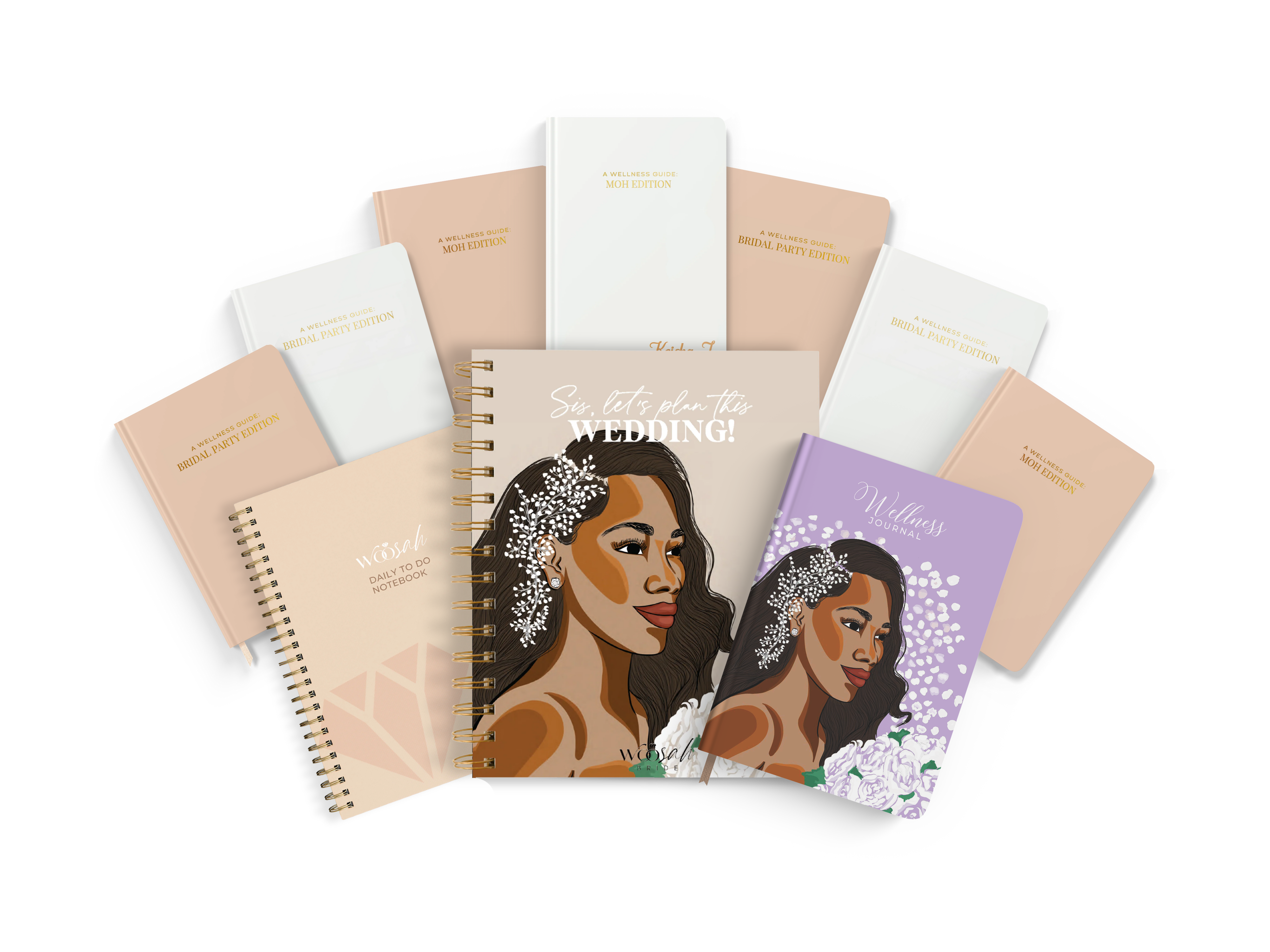 - Up to Seven (7) MOH and Bridal Party Wellness Guides with handmade customizations (mix and match MOH, BRIDAL PARTY and colors for total up to 7)