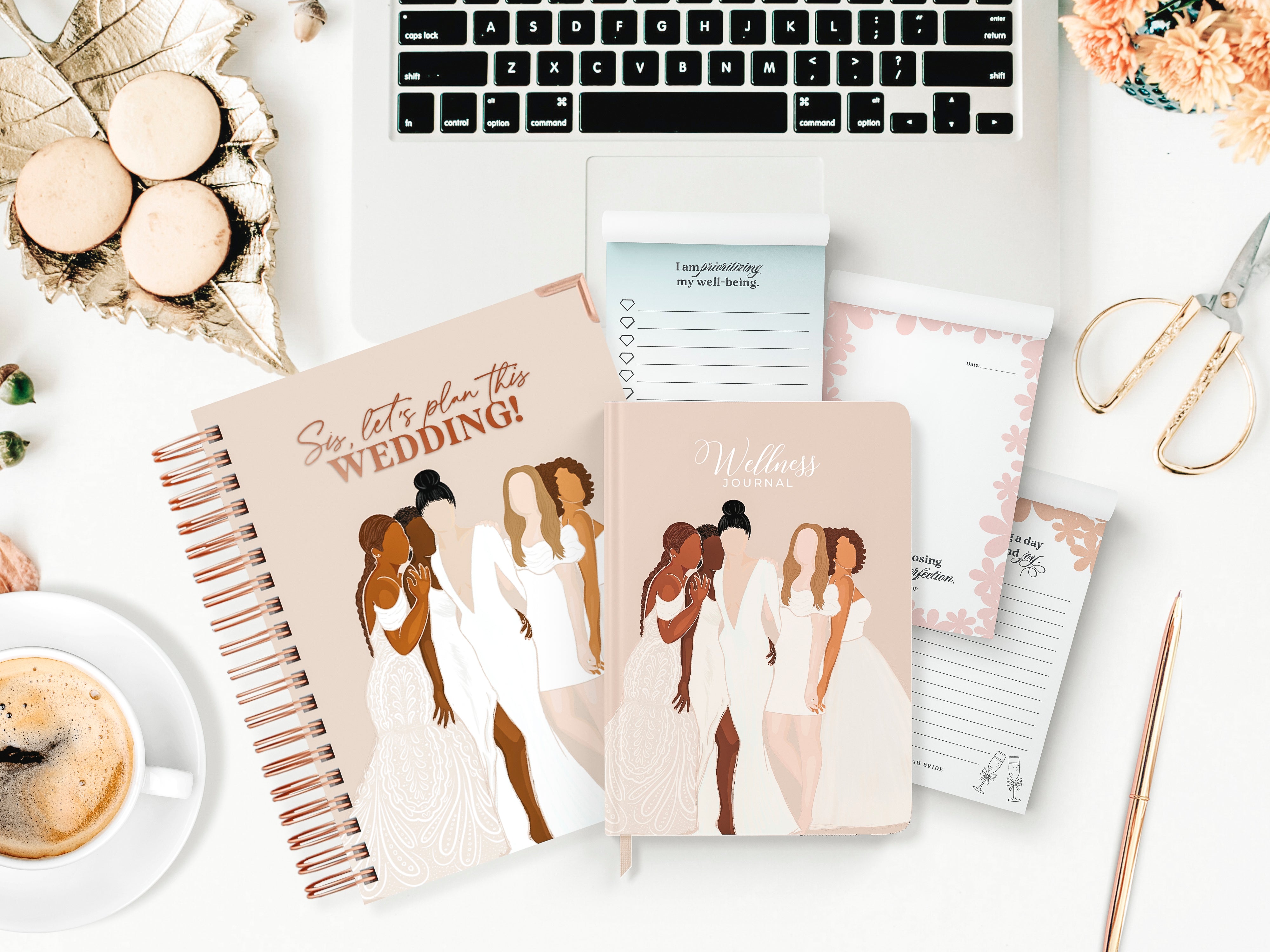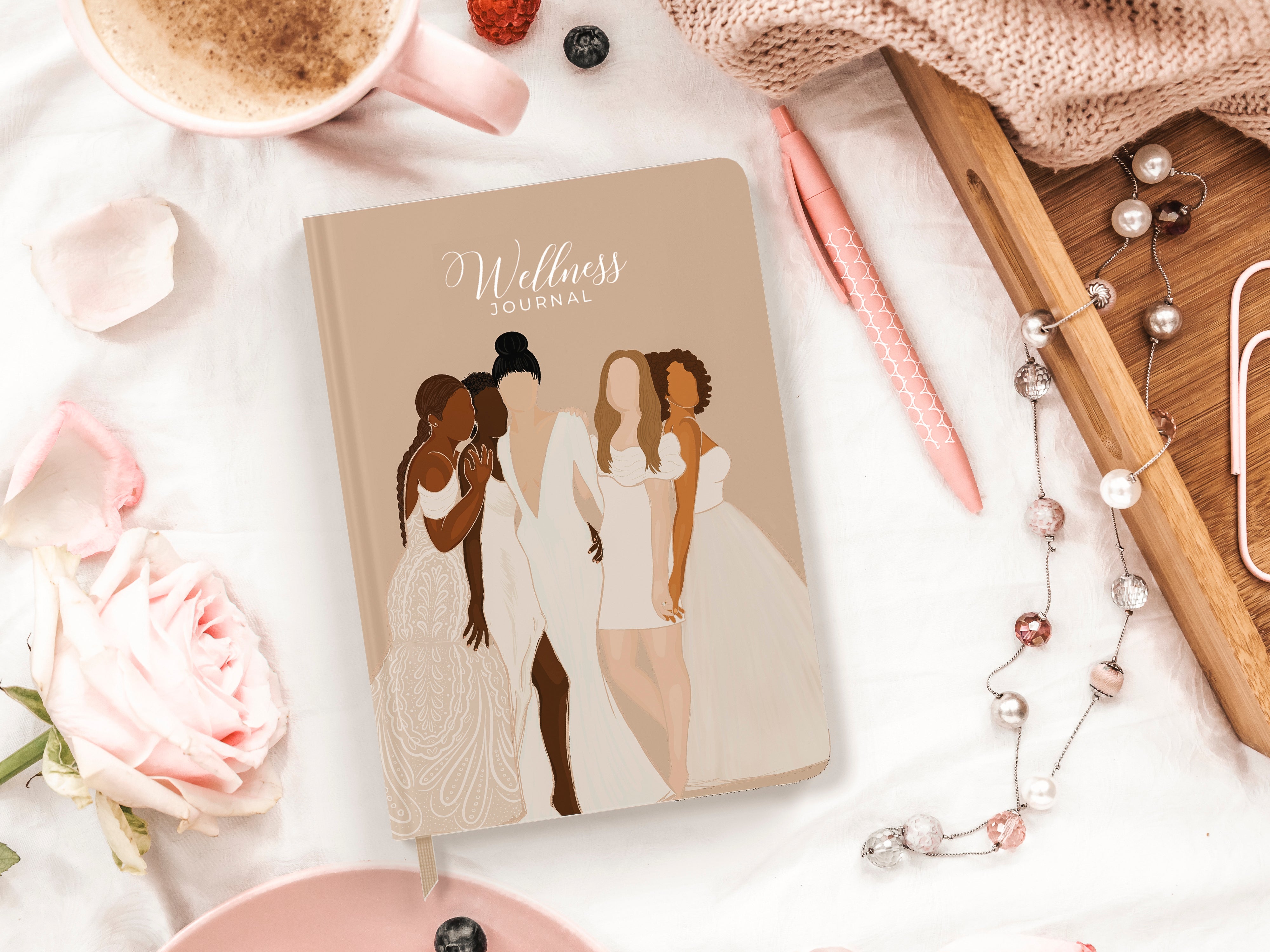 Bridging the gap between wedding planning and self-care w/psychiatrist approved prompts for tracking healthy habits.